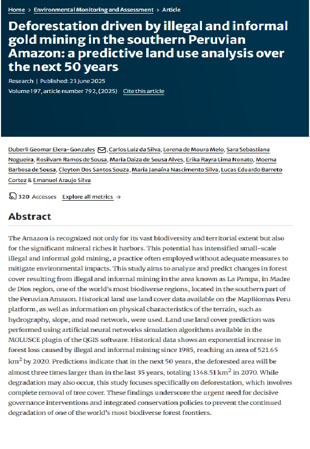 Deforestation driven by illegal and informal gold mining in the southern Peruvian Amazon: a predictive land use analysis over the next 50 years.